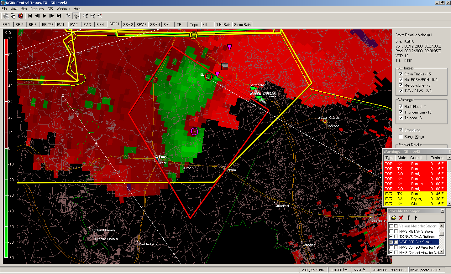 These are some screen capture images I saved of the tornado that spawned a warning from San Antonio after the cell moved south of our CWA. This cell had been producing baseball hail, lowerings and rotation as it moved south.